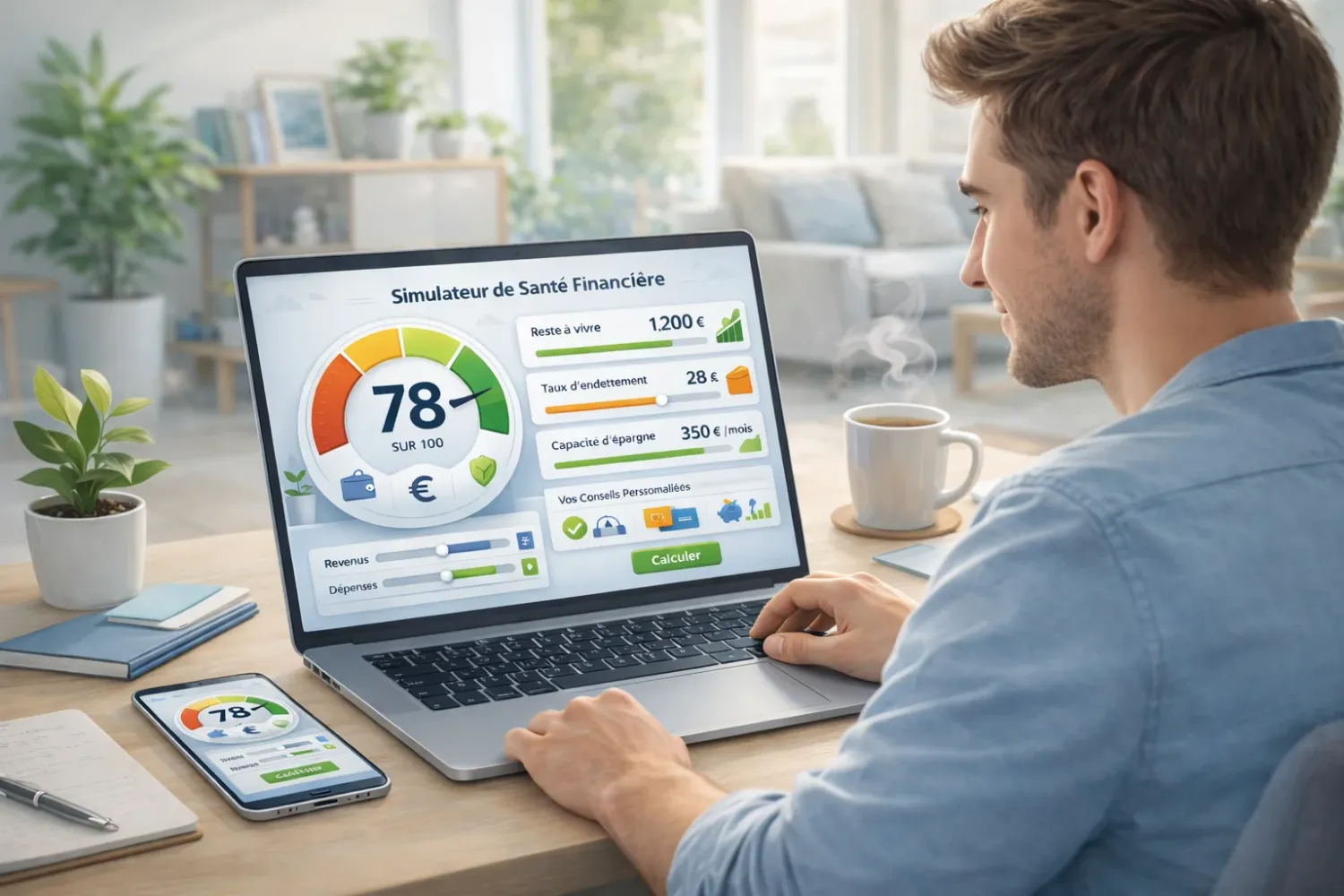 Cet outil analyse rapidement votre reste à vivre, votre taux d'endettement, votre épargne et votre fonds d'urgence.